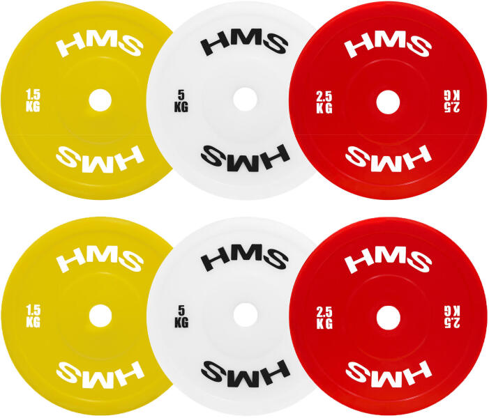 HMS Olimpiai technikai tányérkészlet pe 2 x 1, 5 - 5 kg (18 kg) HMS TPP fehér|sárga|vörös Súlytárcsa