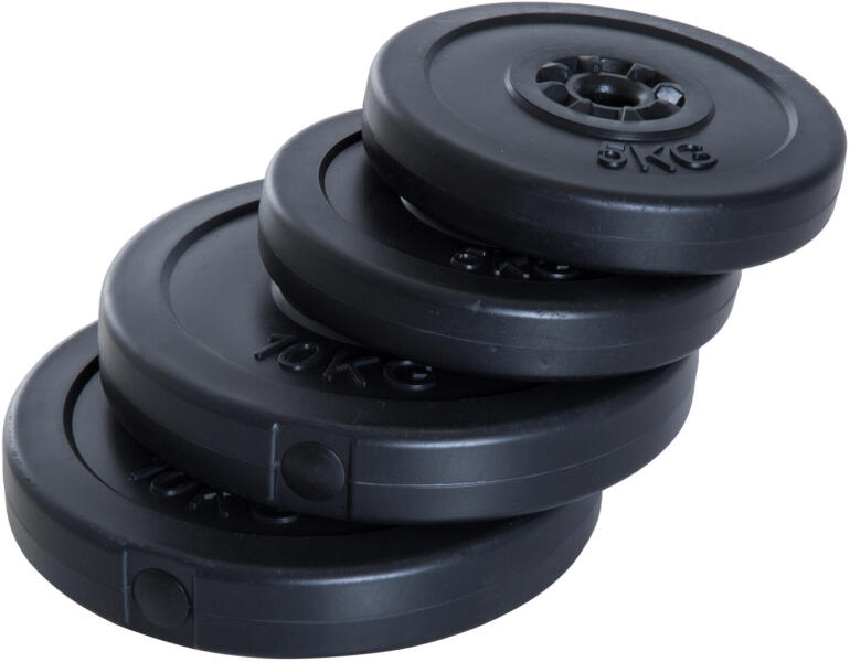 Ez a fogantyúkhoz és kézi súlyzókhoz való súlykészlet 2 db 5 kg-os és 2 db 10 kg-os tárcsából áll. A különböző súlyok igény szerint kombinálhatók.